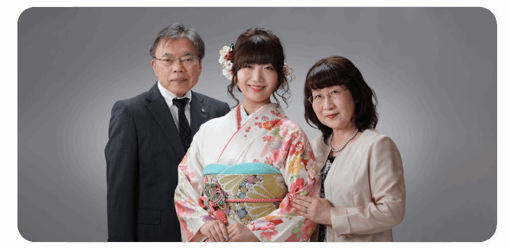 振袖選びから前撮りの撮影、そして式典当日のヘアメイクや衣装のお支度まですべて一括してサポートいたします。